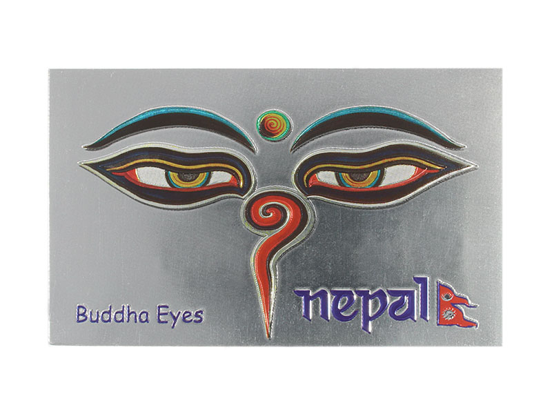 Magnet aus Nepal mit den all sehenden Augen des Buddhas. Ideal als Dekoration für Kühlschrank oder zum Pinnen ihrer Nachricht an eine Magnetwand, Magnettafel oder Metall-Pinnwand.