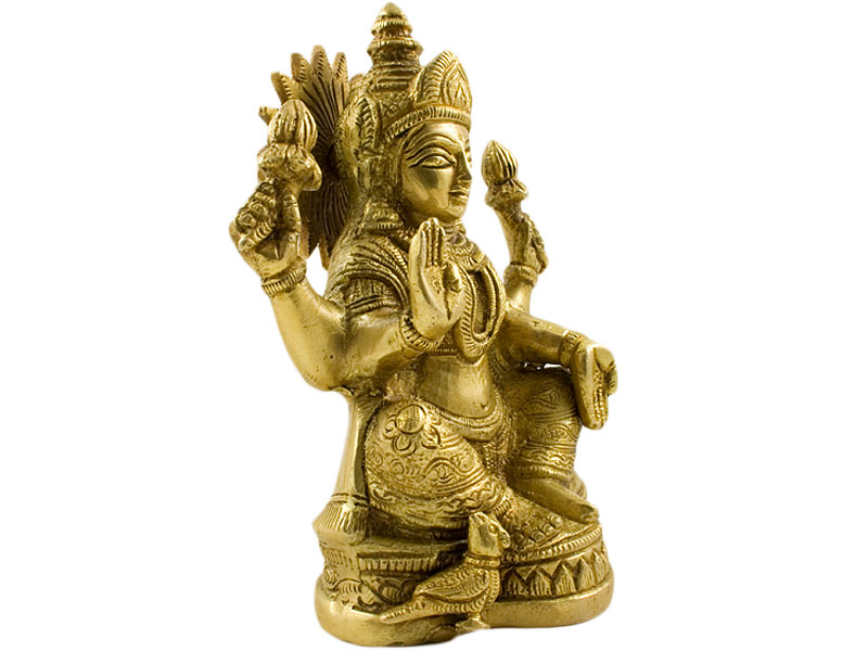 Bei der Sculpture / Figur wird Laxmi sitzend mit der Abhaya Mudra und der Varada Mudra dargestellt. Die rechte Hand zeigt die Abhaya Mudra (Geste der Furchtlosigkeit). Sie ist das Zeichen für Schutz und Segen und heißt so viel wie, habe keine Angst, ich bin mit Dir. Die linke Hand repräsentiert die Varada Mudra. Sie steht für Nächstenliebe, Mitgefühl und Barmherzigkeit. Die beiden oberen Hände halten eine halboffene Lotusblüte mit 100 Blüten. Der Lotus steht für Reinheit und geistige Kraft.